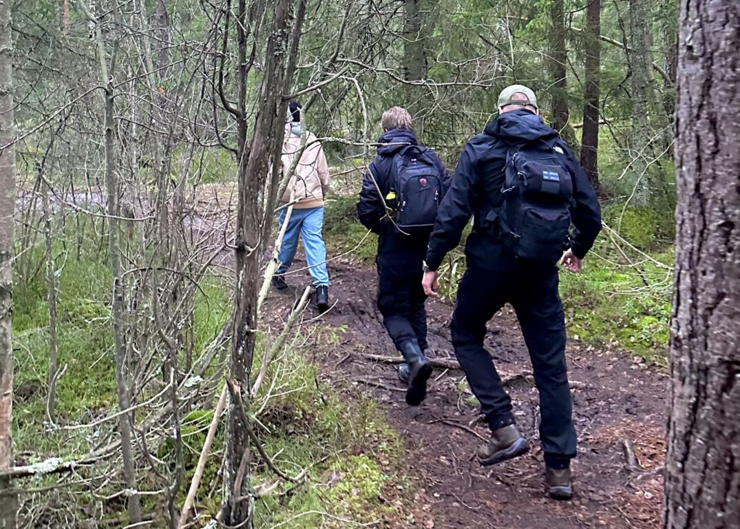 Nuorten toimikunnan jäseniä marssimassa Sipoonkorven kansallispuistossa joulukuussa 2024.